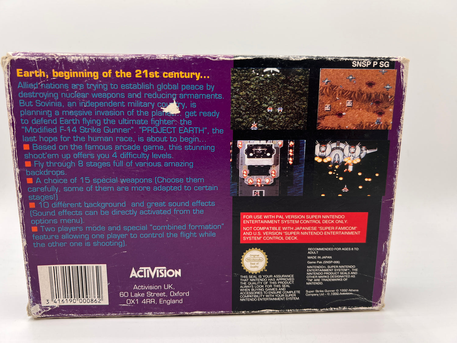 Blast off into explosive action with Super Strike Gunner for Super Nintendo! Pilot your powerful spaceship through intense battles, dodge tricky obstacles, and unleash a barrage of firepower on your enemies. Perfect for players who love fast-paced shooting fun and nonstop excitement in pixel-perfect style!